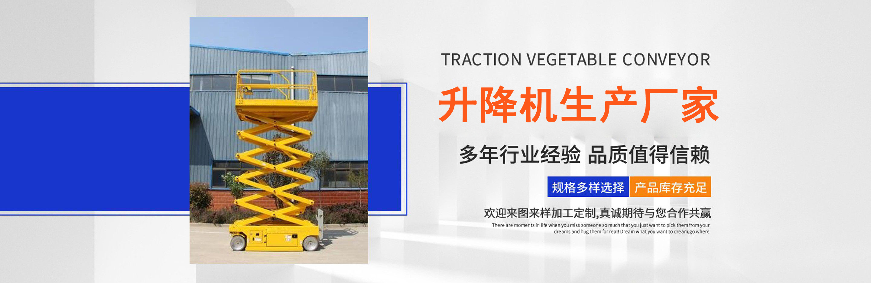 升降平臺,液壓貨梯,卸豬臺,平板拖車,液壓提升機,移動式升降機,升降平臺車,高空作業設備,貨梯廠家,液壓登車橋-升降機生產廠家 公司簡介/ ABOUT